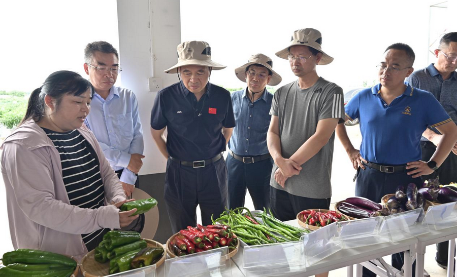 鄒學(xué)校一行人深入興蔬種業(yè)基地田間地頭,仔細(xì)查看辣椒、茄子、黃瓜等蔬菜新品種的生長態(tài)勢(shì),詳細(xì)了解興蔬種業(yè)在品種選育、栽培技術(shù)、推廣應(yīng)用等方面的工作成果與實(shí)踐情況。湖南蔬菜研究所的科研團(tuán)隊(duì)就博辣天驕1號(hào)、脆甜16號(hào)、紅秀3號(hào)等高品質(zhì)成果作了詳細(xì)匯報(bào)。