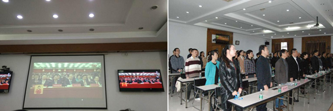 (集團(tuán)公司總部集團(tuán)機(jī)關(guān)、股份機(jī)關(guān)、后勤、工程益康4個(gè)黨支部組織收看現(xiàn)場(chǎng))