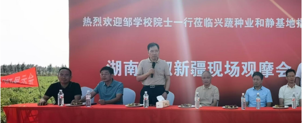 在致辭中,鄒學(xué)校以其深厚的學(xué)術(shù)底蘊(yùn)和前瞻性的視野,深度剖析了辣椒育種領(lǐng)域的最新科研成果與未來發(fā)展方向,特別強(qiáng)調(diào)了興蔬辣椒在新疆地區(qū)的卓越表現(xiàn),尤其是對(duì)博辣天星721的耐鹽堿性狀給予了高度評(píng)價(jià)。他表示,這不僅是對(duì)育種團(tuán)隊(duì)辛勤付出的最好回報(bào),也是對(duì)我國辣椒育種技術(shù)的一次重要突破。鄒學(xué)校希望大家要繼續(xù)秉持創(chuàng)新精神,不斷優(yōu)化和提升辣椒品種,致力于實(shí)現(xiàn)辣椒種植不與糧食作物爭(zhēng)耕地的愿景,為保障國家糧食安全作出積極貢獻(xiàn)。李雪峰介紹了湖南省蔬菜研究所在辣椒遺傳育種方面的最新研究成果,并表達(dá)了對(duì)新疆辣椒產(chǎn)業(yè)發(fā)展的美好祝愿。