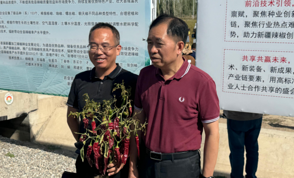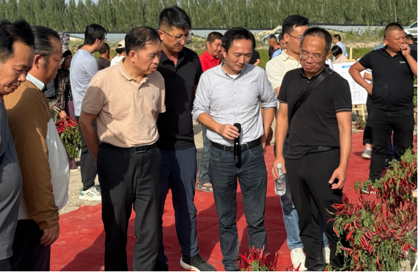 天山突兀拔地起,雪光燭天天尺咫。2024年9月19日,帶著豐收的喜悅,湖南興蔬種業(yè)辣椒品種新疆現(xiàn)場(chǎng)觀摩會(huì)隆重召開。本次觀摩會(huì)由湖南興蔬種業(yè)有限公司與湖南省蔬菜研究所聯(lián)合主辦。中國工程院院士、國家特色蔬菜產(chǎn)業(yè)技術(shù)體系首席科學(xué)家、湖南農(nóng)業(yè)大學(xué)校長鄒學(xué)校,湖南省蔬菜產(chǎn)業(yè)技術(shù)體系首席科學(xué)家戴雄澤,國家特色蔬菜產(chǎn)業(yè)體系崗位科學(xué)家劉峰,新疆生產(chǎn)建設(shè)兵團(tuán)第二師22團(tuán)黨委書記、政委張?chǎng)?,湖南省蔬菜研究所所長李雪峰,湖南興蔬種業(yè)有限公司董事長鄒家華蒞臨現(xiàn)場(chǎng),共同見證辣椒產(chǎn)業(yè)的新篇章。