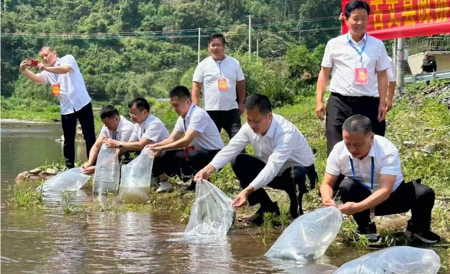 書香潤初心,助力生態(tài)美。5月29日,古丈縣政協(xié)“書香伴履職·學(xué)習(xí)聚共識”讀書分享會(huì)暨“改善生態(tài)環(huán)境民主監(jiān)督”活動(dòng)在巖頭寨鎮(zhèn)舉行。海利駐村工作隊(duì)全程參加了本次活動(dòng)。在鲇溪村,縣政協(xié)主席宋祖林及委員代表一行實(shí)地走訪了河流沿岸、垃圾處理場等重點(diǎn)區(qū)域,現(xiàn)場調(diào)研生態(tài)環(huán)境保護(hù)現(xiàn)狀,聽取干群意見,并就發(fā)現(xiàn)問題提出整改建議?;顒?dòng)組還向鲇溪河投放魚苗20萬尾,以促進(jìn)水域生態(tài)修復(fù)。