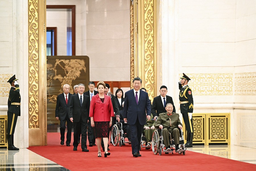 9月29日,中華人民共和國(guó)國(guó)家勛章和國(guó)家榮譽(yù)稱(chēng)號(hào)頒授儀式在北京人民大會(huì)堂金色大廳隆重舉行。中共中央總書(shū)記、國(guó)家主席、中央軍委主席習(xí)近平向“友誼勛章”獲得者迪爾瑪·羅塞芙頒授勛章。新華社記者謝環(huán)馳攝